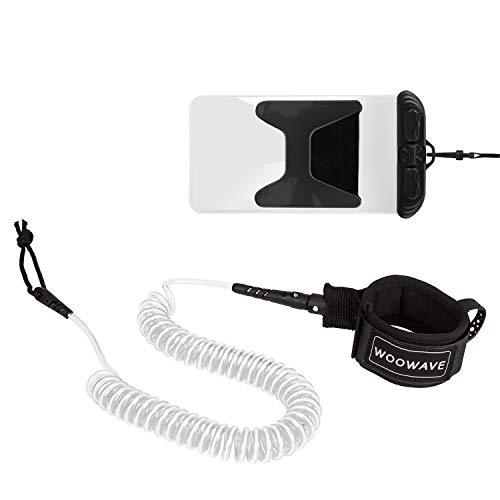 WOOWAVE SUP リーシュ 11フィート コイル状のスタンドアップパドルボード サーフボード リーシュ ステイオンボード アンクルストラップ 防水財布/スマホケース付き (クリアホワイトコア) |