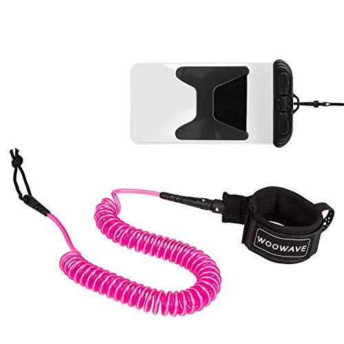 WOOWAVE SUP リーシュ 11フィート コイル状スタンドアップパドルボード サーフボード リーシュ ステイオンボード アンクルストラップ 防水財布/スマホケース付き (ピンクホワイトコア) |
