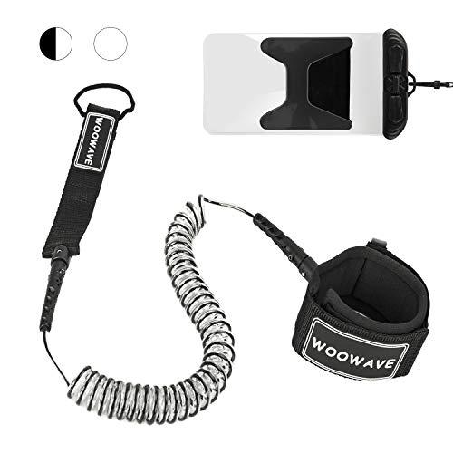 WOOWAVE SUP Leash Premium Stand Up Paddle Board Surfboard Leash Coiled 8/10 feet Stay on Board with Waterproof Wallet/Phone Case (Clear Black Core, 10ft & 7mm) |