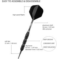 | Make sure this fitsby entering your model number.LOOKS & FEELS GREAT-----This keel design total weight 20 grams soft tip darts set are suitable for all levels player, best choise if you need a heavier darts set. The smooth release and deep groove grip barrel create exceptional performance in darts competition game; Stylish sturdy darts set with green aluminum shafts and high speed flights looks great, it's a ideal gift for friends falimy who in love of darts;ACCURACY & BALANCE----- The straight and streamlined design of the dart barrel with grip enhancing grooves provides excellent weight balance, even-loaded style dart is better for players who place fingers more evenly on the barrel that takes your skill to next; Specifically designed pattern standard flights provide excellent balance and accuracy which to help increase speed and reduce drag,delivering a consistent flight path for pinpoint accuracy;STABILITY&DURABLE----- Every shaft comes with an anti-loosening O ring placed around the standard 2BA thread. Unbreakable light-weighted slim aluminum shafts give the dart exceptional balance and greatly reduce the need to retighten during play;WHAT'S IN PACKAGE----- Darts set with extra 30 x replacement 2BA universal soft tip points + 3pcs nylon white dart shafts + 3pcs extra flights + 50 rubber O-rings + lifetime warranty, we cover responsibility 100%;EVERLASTING MEMORIES ----- Classic darts game have a unique ability to gather people and encourage positive competition. Great for adults enjoy the happy time of family entertainment that will last a lifetime; |