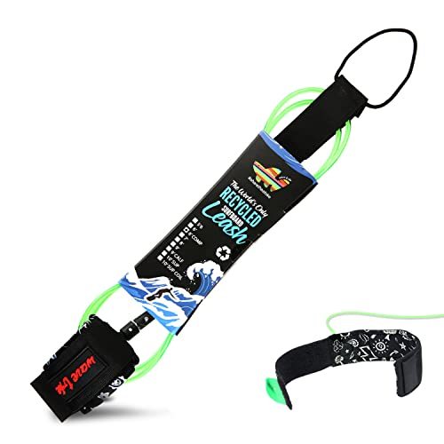 サーフィン リーシュコード マリンスポーツ wtRL-1 Wave Tribe Eco Surfboard Leash - 8' Premium Surf Leash, Strong Like Bull Leash with Double Stainless Steel Swivels, Triple Rail Saver, Key Pocket (Green)