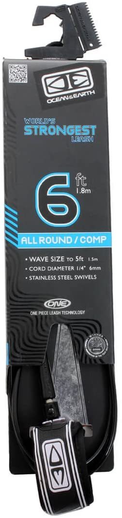 6'0" All Round Leash, 38mm Padded Strap, Double Swivel, 6ヶ月保証Ocean and Earthの特許である「ワンピース」成型コードは、世界で最も強いLeashNew, thin 6mm textured neoprene with bound edgeを作り出しました。また、踵に装着することで、より安全性を高めることができます。強化されたネック。視認性のための明るい? ?安全赤'リリースタブ。タフな12mm幅のウェビング。 |