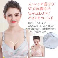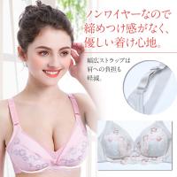 ブラジャーを外すことなく、スナップボタンオープン式で片手で簡単に授乳できます。カップの裏地には綿100%生地を使用しお肌にも優しく、ノンワイヤーなので締めつけ感もなく優しい着け心地。3D立体構造で包み込むようにバストをホールドし、幅広な滑り止め肩ひもが肩への負担を軽減し理想的な位置へバストを誘導します。4段階ホックでサイズアップにも対応。ストレッチ素材の幅広デザインなので脇までしっかりサポートし横流れを防ぎます。前面はオシャレでかわいい花柄レースデザイン。