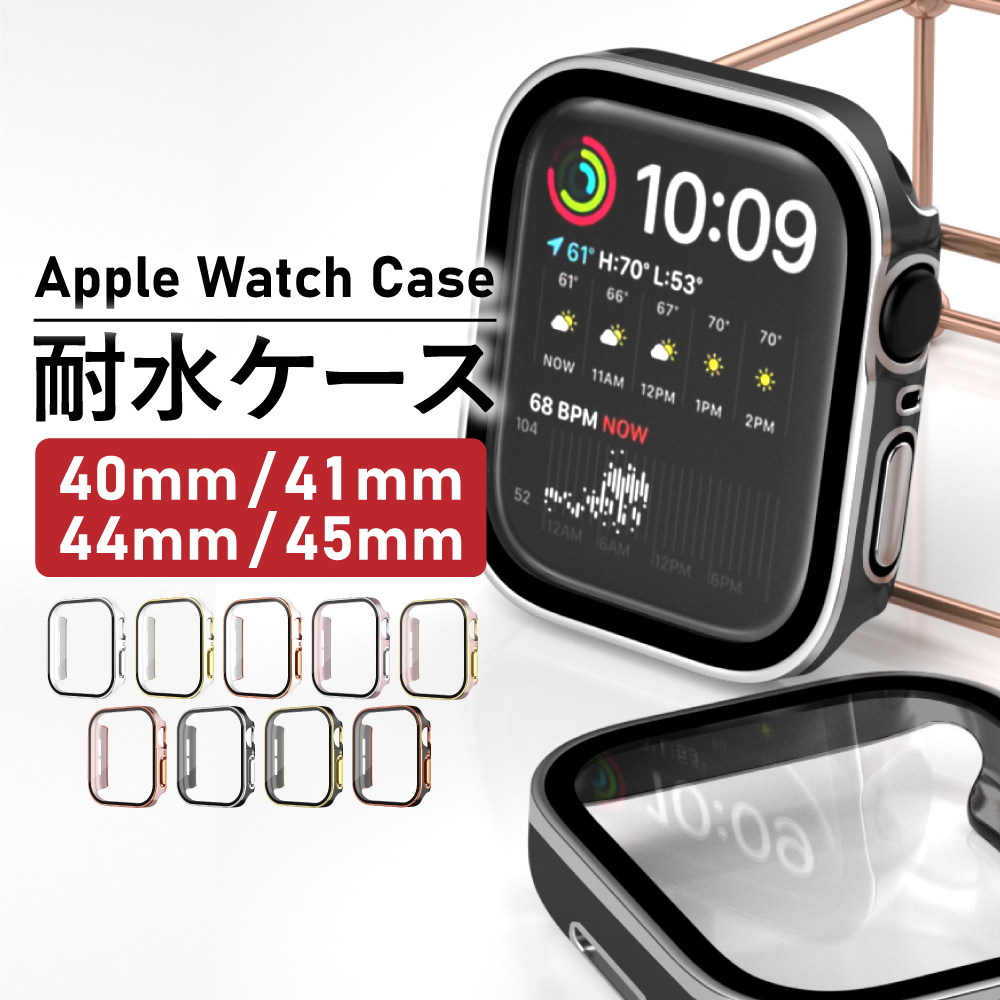 | 注意事項 | ※Apple Watch本体は付属しません。 ※色・サイズの選択など、ご注文時に必ずご確認をお願いいたします。 ※本ページ画像と商品実物の色合いや質感について、ご覧の環境などによっては多少の誤差がある場合がございます。 アップルウォッチ本来の防水性能を向上させるものではありません。あくまでケース内への浸水を防ぐものです。 ・プールや海などの水場でのご使用時はアップルウォッチの説明に従い、スキューバダイビング、ウォータースキーなど、水圧が高くなったり、所定の水深より深く潜るようなアクティビティはしないでください。 ・想定以上の 水流、水圧や外的衝撃により、パッキンのズレが生じ、 アップルウォッチ液晶部と保護ケースガラス面との間に水が入る場合がございます。 ・外的衝撃を防ぐため、手首を曲げても当たらない位置にケースを装着してご使用ください。 ・ 万が一水が侵入した場合には一旦保護ケースを取り外し、柔らかい布で水を拭き取り保護ケースを完全に乾燥させてからのご使用を推奨しております。 ・Apple Watch本体の劣化や耐水性が損なわれる場合がありますので、真水以外に触れた場合は、Apple Watchと保護ケースの汚れをきれいな水で落とし、 糸くずの出ない布で拭き取ってください。 |
