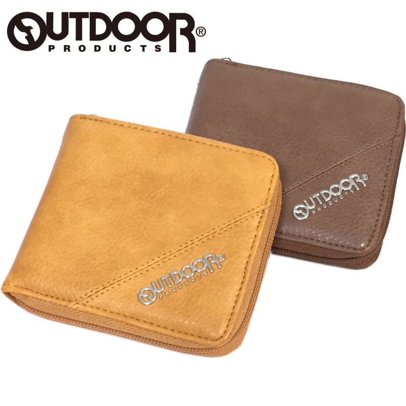 OUTDOOR PRODUCTS アウトドアプロダクツ フォーミングロゴ&チャーム ラウンドジップ 二つ折り財布 ウォレット 男女兼用 ユニセックス キャンプ レジャー