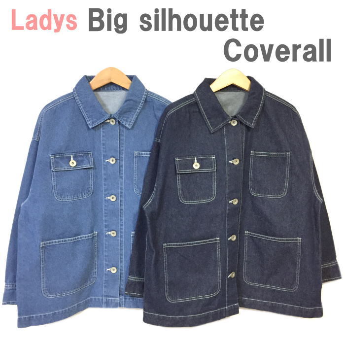 【レディース】 ビッグシルエット オーバーサイズ 綿100% カバーオール デニムジャケット インディゴ ジャケット コットン100%