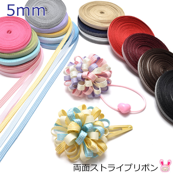 5mm 両面ストライプ仕上げリボン 韓国製 6m [在庫限り]