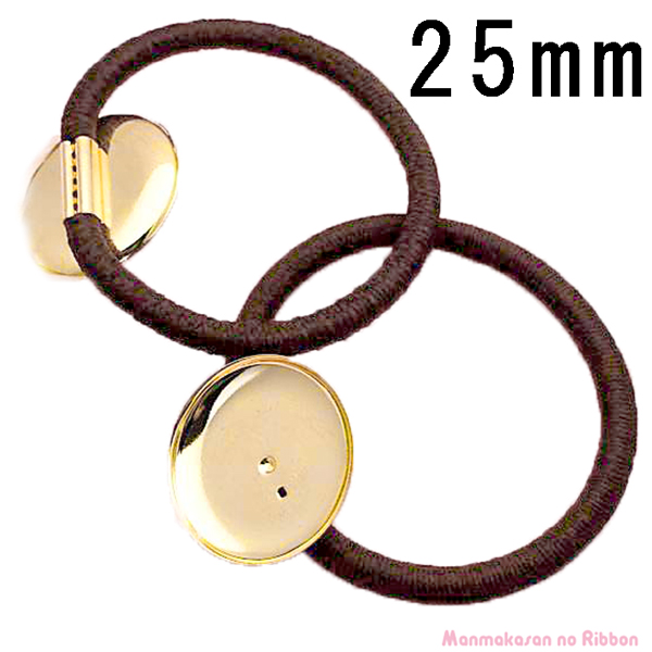 ヘアゴム ゴールド 金具付き リングゴム 茶(台・25mm) 韓国製 2個