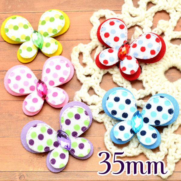 レアパーツ カラーストーン 布の蝶モチーフ 35mm カラフル水玉 2個 [在庫限り]