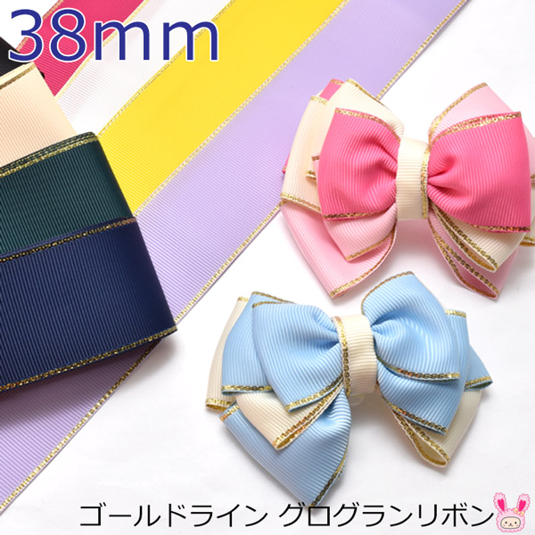 グログランリボンの両サイドにゴールドのラインが入ったリボン資材です。
