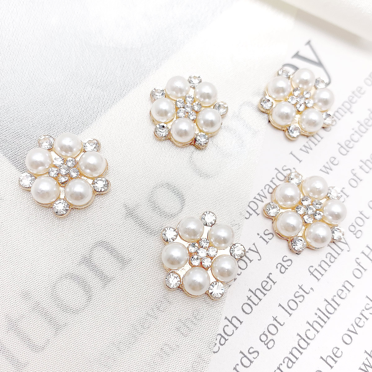 5粒のパールのお花型にラインストーンをあしらった豪華で華やかなパーツです。