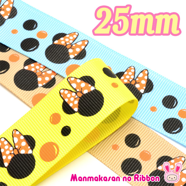 25mm プリントリボン ディズニー 風船ミニーとシャボン玉のリボン 2m [在庫限り][SALE価格]