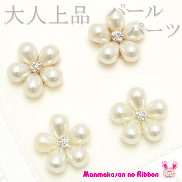 ゴールドパーツ 真ん中ストーンの花びらパールのおはな 1個