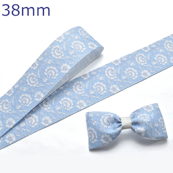 プリントリボン カントリーフラワーの水色リボン 幅38mm 1m単位 切り売り (3m以上)