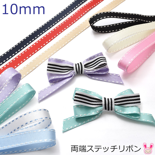 10mm 両端ステッチリボン 韓国製 2M [在庫限り]
