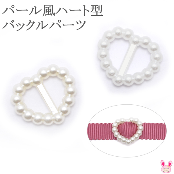 デコパーツ パール風ハート型バックルパーツ 20個入