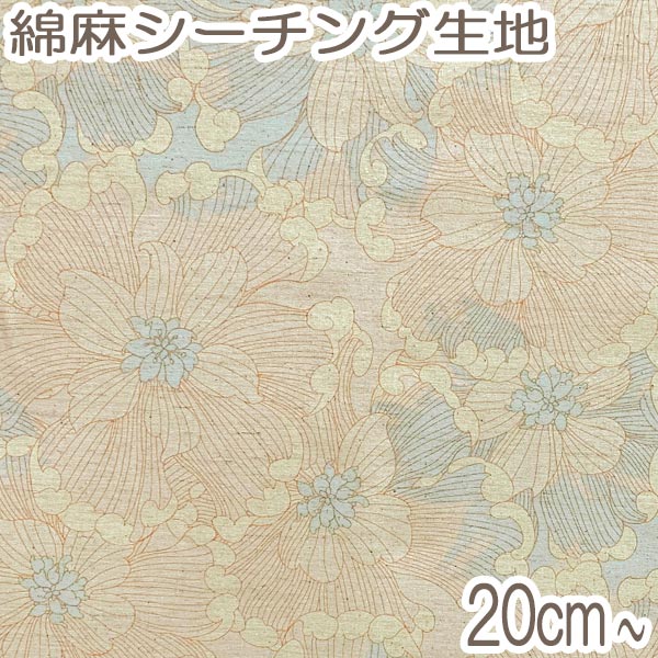 YUWA有輪商店 大きなリゾートフラワー 3水色系 10cm単位 切り売り CC-443110 綿麻シーチング生地 (103) [在庫限り] (50cm以上)