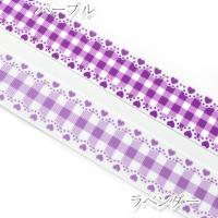 25mm プリントリボン ゆめかわハートとチェックのレース風リボン 2m