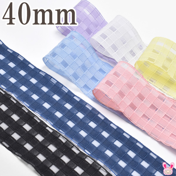 シースルーなブロックチェックのメッシュリボン 幅40mm 2m