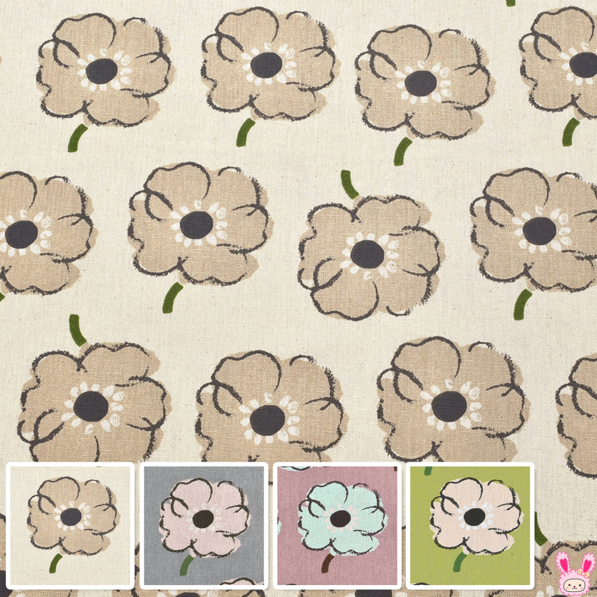 アースカラーのアネモネ 綿麻キャンバス生地 N38124-1 イブキ (50cm以上10cm単位切り売り) [在庫限り]