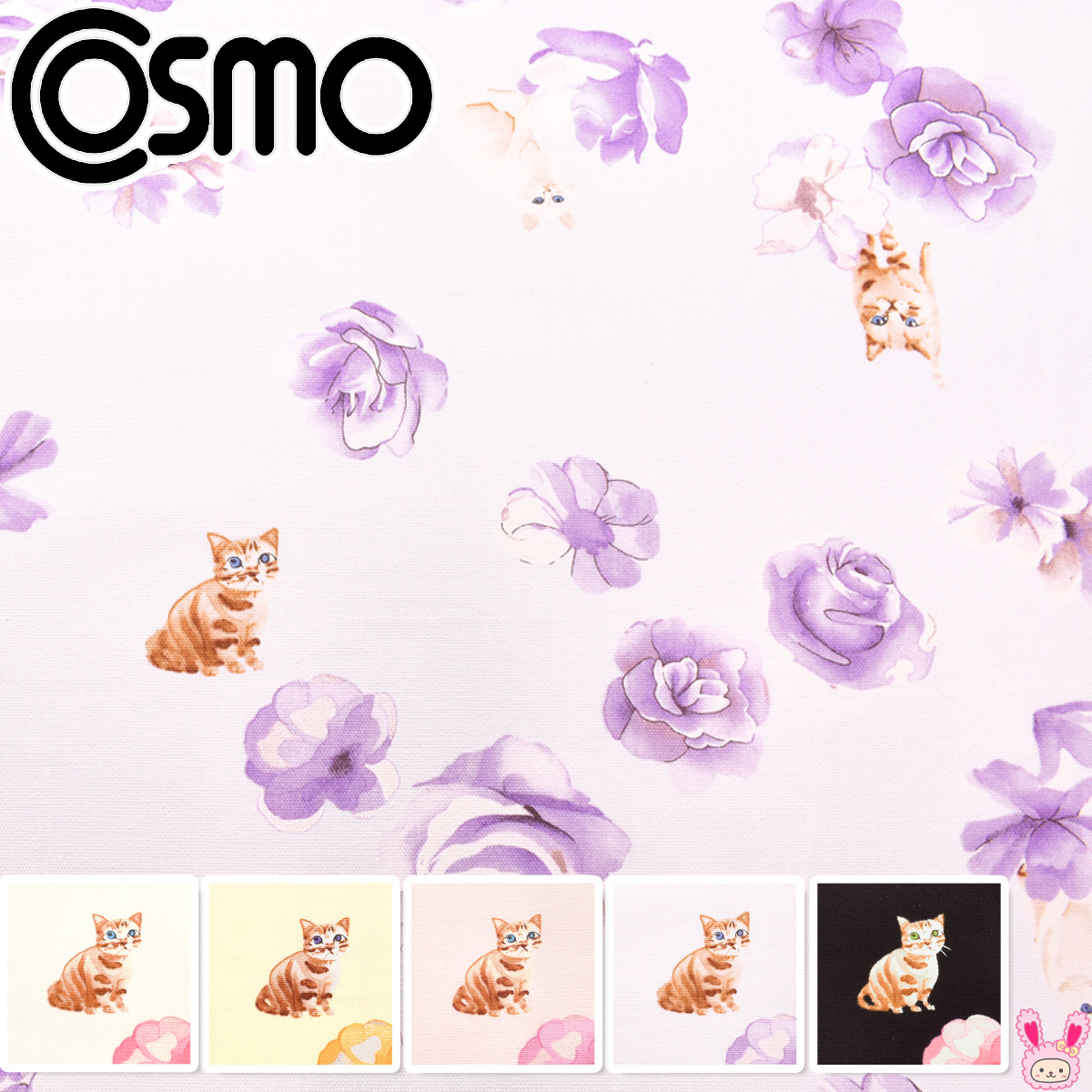 キャット&フラワー オックス生地 AP42803-2 コスモ (50cm以上10cm単位切り売り) [在庫限り][NEW SALE価格]