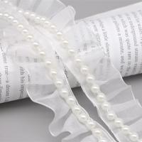上品なパール付きオーガンジーフリルリボン 幅30mm 1m単位 切り売り