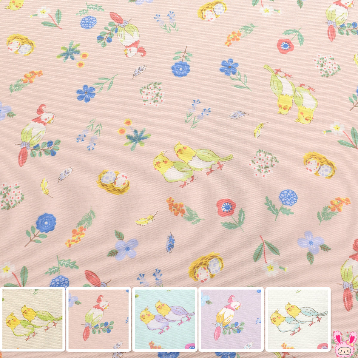 インコとお花 オックス生地 HSK736 カナヤス (50cm以上10cm単位切り売り) [在庫限り]