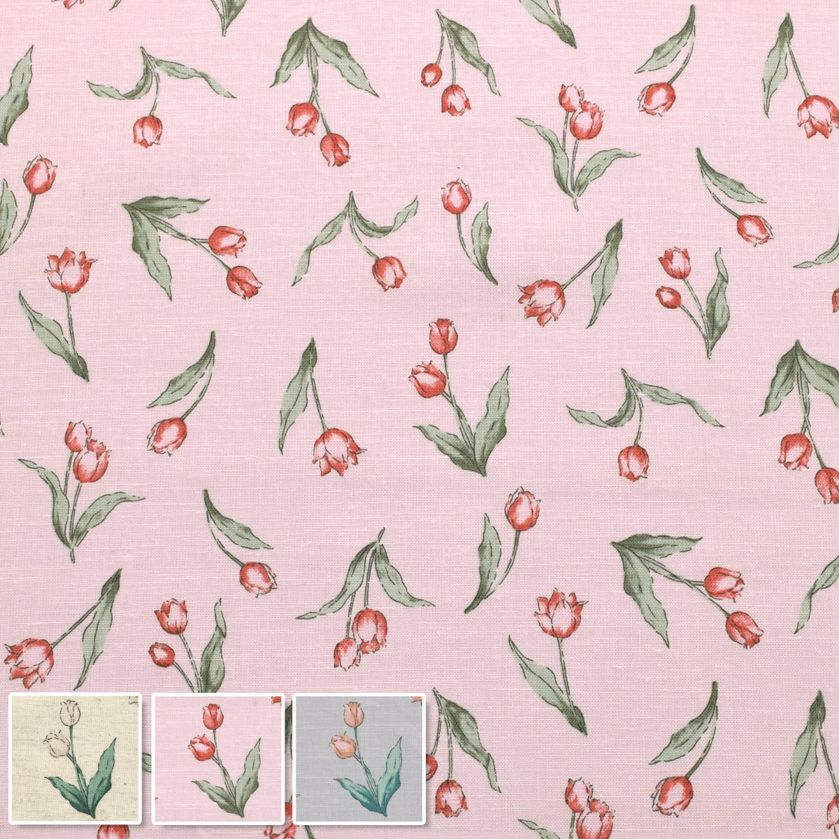 ナチュラルチューリップ 綿麻シーチング生地 142-1362-C 小泉 (50cm以上10cm単位切り売り) [在庫限り][NEW SALE価格]◎