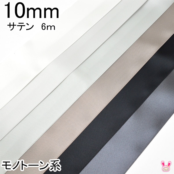 10mm 両面サテンリボン 6m 黒・白・モノトーン系