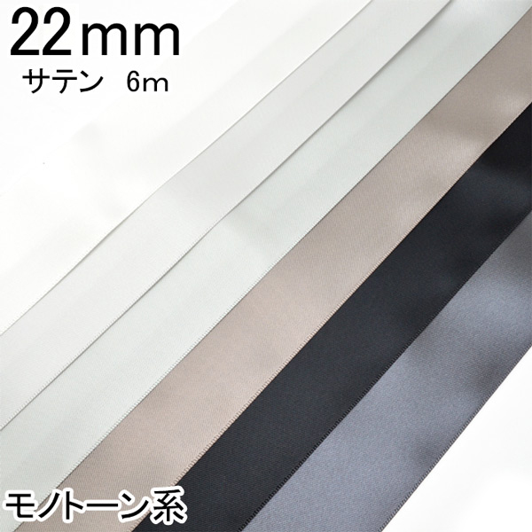 22mm 両面サテンリボン 6m 黒・白・モノトーン系
