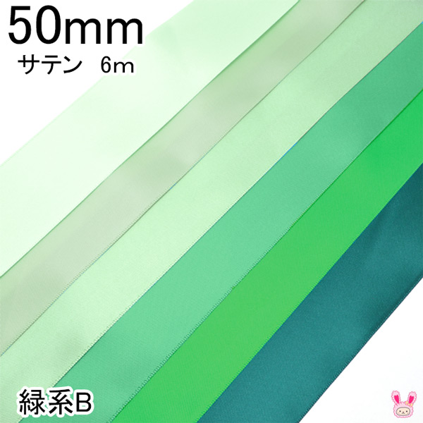 50mm 両面サテンリボン 6m 緑系B