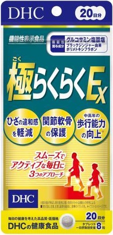 栄養成分:【8粒3216mgあたり】熱量11.5kcal、たんぱく質0.68g、脂質0.23g、炭水化物1.68g、食塩相 当量0.017g[機能性関与成分]グルコサミン塩酸塩1500mg、ブラックジンジャー由来ポリメトキシフラボン12.0mgメチルスルフォニルメタン 500mg、コンドロイチン硫酸60mg、5-ロキシン(ボスウェリアセラータエキス末)60mg、II型コラーゲン15mg、ヒアルロン酸10mg、 CBP(濃縮乳清活性たんぱく)3mg、エラスチンペプチド(魚由来)2mg