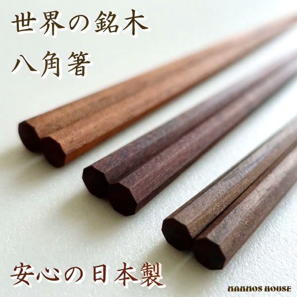 世界の銘木 お箸 縁起の良い 八角箸 おはし 木製 おしゃれ 本物志向 かっこいい 大人の箸 上質 日本製 木の箸 21cm 国産 ナチュラルウッド 天然木 無垢材 風水