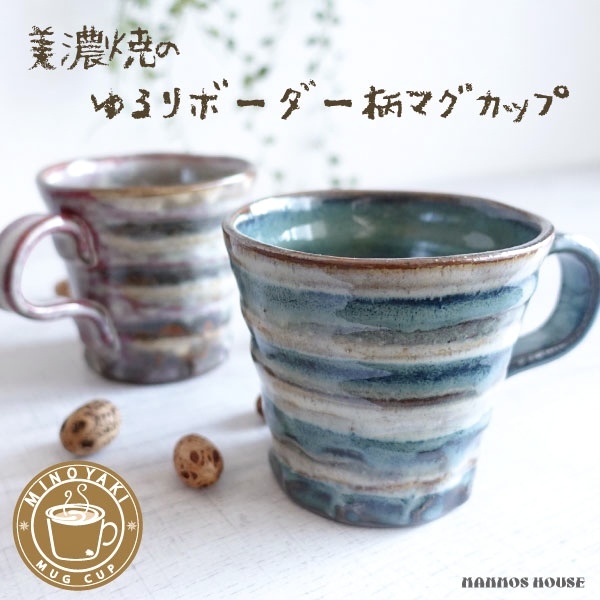 大きい マグカップ 美濃焼 おしゃれ 北欧風 カフェ 日本製 コーヒーカップ 陶器 かわいい 素朴 大きな 300ml 素焼き コップ ボーダー柄 ライン 個性的