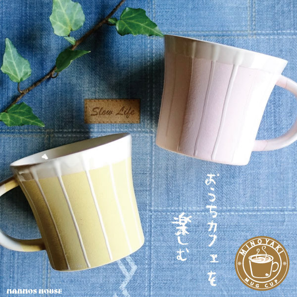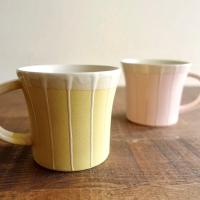 マグカップ おしゃれ 美濃焼 カフェ コーヒーカップ 陶器 かわいい 北欧風 ピンク イエロー 日本製 ストライプ 280ml 素焼き コップ パステルカラー 大人可愛い