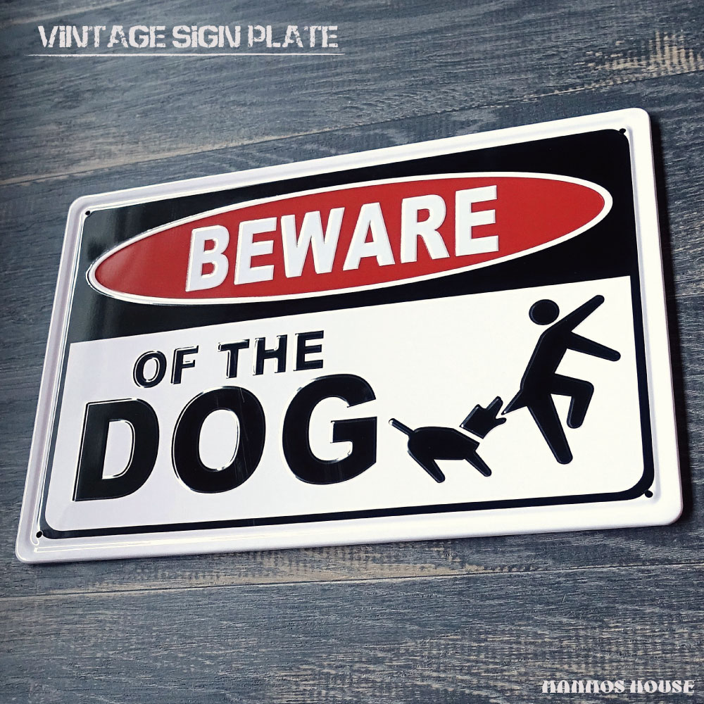 ブリキ看板 BEWARE OF THE DOG 猛犬注意 犬に注意 アメリカン ビンテージ 注意看板 かわいい 注意 危険 おしゃれ 看板 サインプレート 壁飾り 壁掛け インテリア