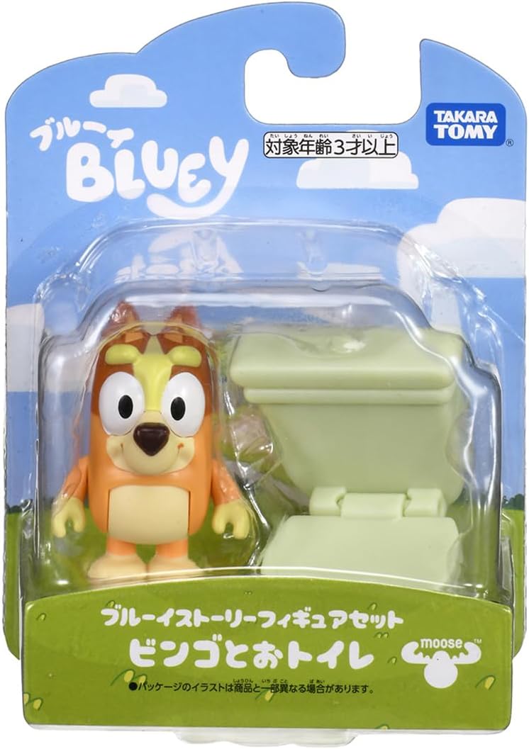 アニメ「ブルーイ」の商品が登場! アニメのエピソードにそった、ビンゴのフィギュアとトイレのセットです。