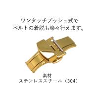 ステンレススチールを使用した観音開きタイプのDバックル。お手持ちの革バンドの時計に装着するだけでワンタッチで着脱可能に!