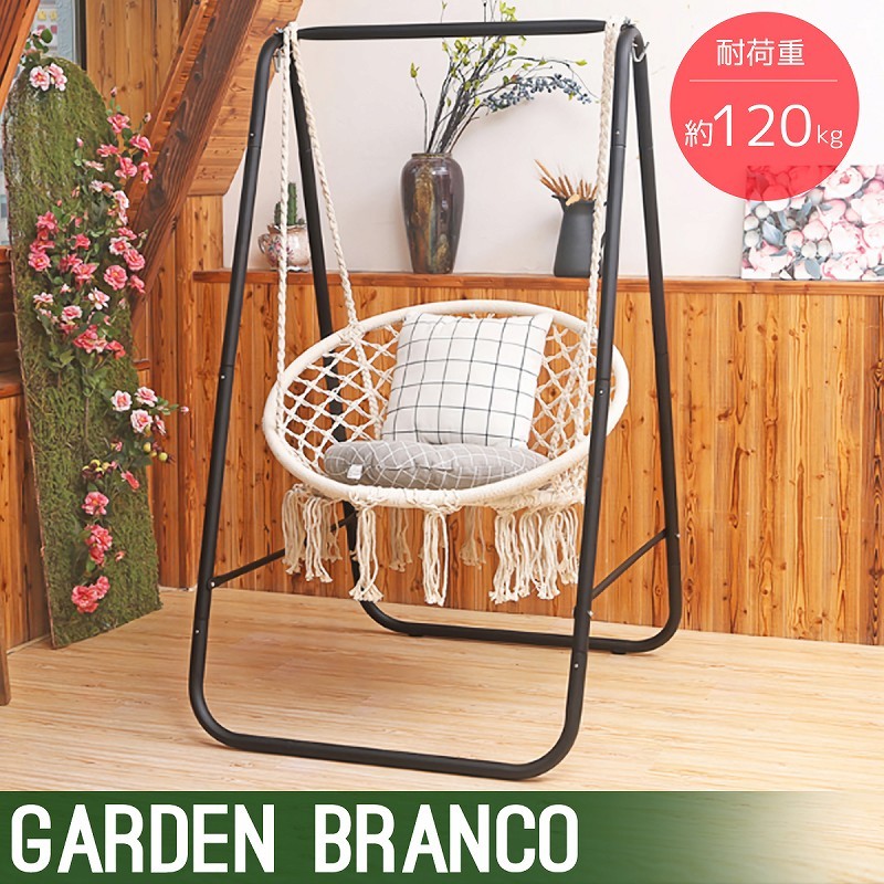 自立式 ハンモックチェア ガーデンブランコ ハンギングチェア スタンド チェア ロープ式 アウトドア インテリア 室内