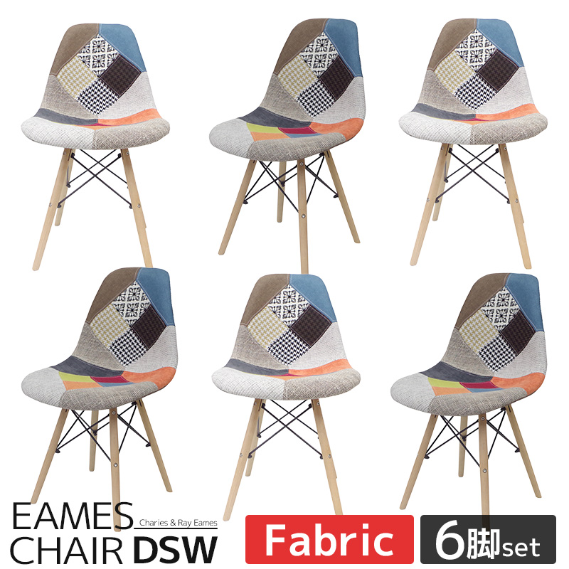 ダイニングチェア イームズ チェア パッチワーク DAW イームズチェア シェルチェア 木脚 デザイナーズ 家具 北欧テイスト スクープ 6脚セット 新生活応援 EM-26