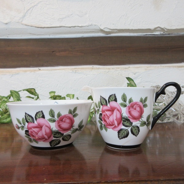 イギリスより入荷致しましたヴィンテージ雑貨 英国製 ウィンザー陶器(CWS)のシュガーボウル&クリーマーです。シュガーボウル&クリーマー2点1セットの出品となります。黒と薔薇の色合いが素敵なお品です。ウィンザー陶器などで知られるCWS(Co-operative Wholesale Society Ltd)は、「陶器の里」として有名なストーク・オン・トレントのsix townsの1つであるLongton にて1911年に創業し、 1971年まで続きました。バックスタンプを見ますと、1960年以降に作られたものと思われます。シュガーボウルとクリーマーにヒビがございますので、ディスプレイ用として出品いたします。気になる方はご注文をお控えください。