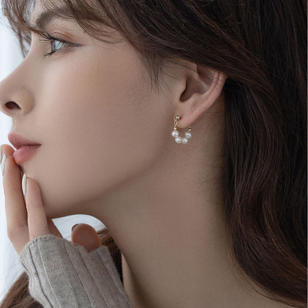 ピアス 18金 フープ アレルギー対応 パール シンプル つけっぱなし レディース ゴールド