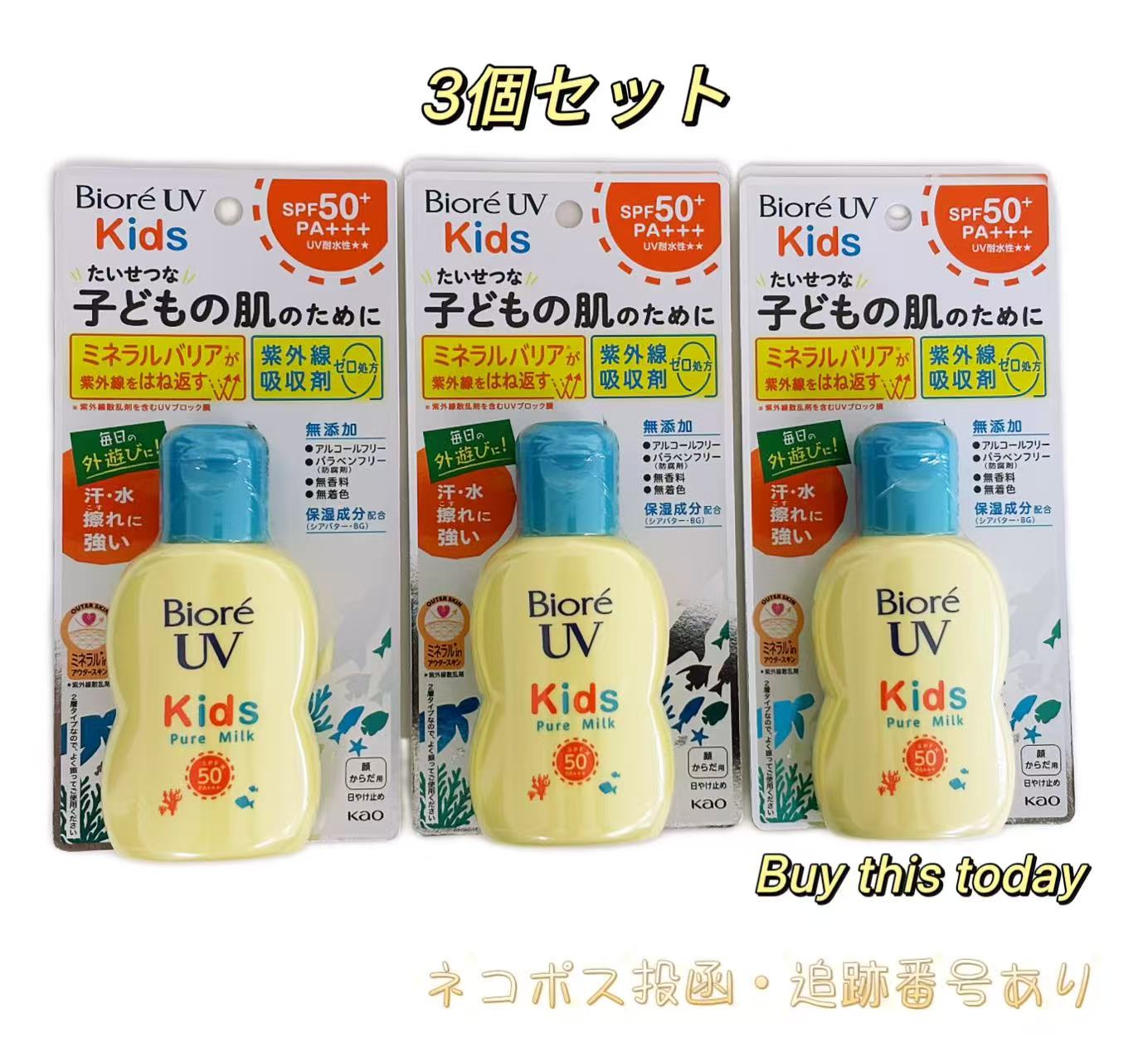 3個セット 花王 ビオレ UV キッズ ピュアミルク 70ml 日焼け止め UV耐水性★★ 顔 からだ用 子供 SPF50+ PA+++ ネコポス投函・追跡番号あり