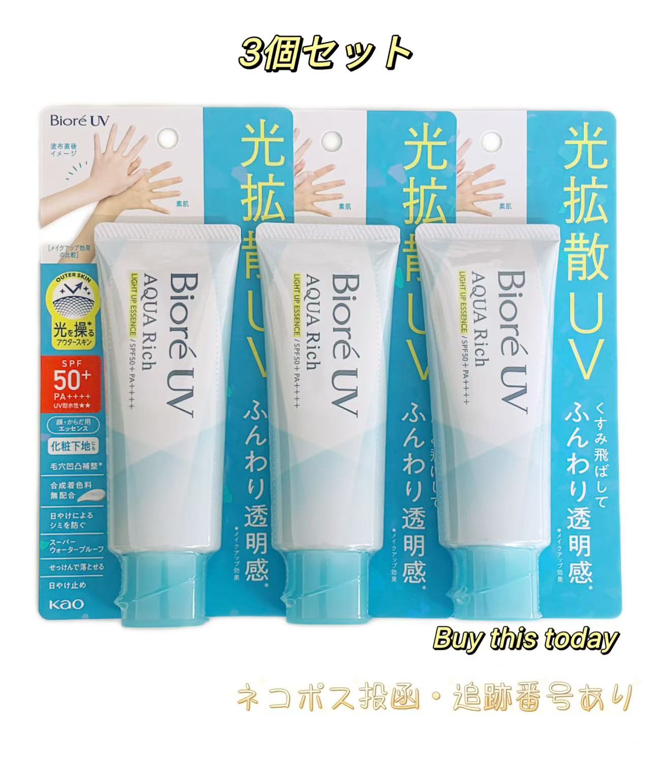 3個セット 花王 ビオレUV アクアリッチ ライトアップエッセンス 70g 日焼け止め 紫外線 サンケア SPF50+ PA++++ ネコポス投函・追跡番号あり