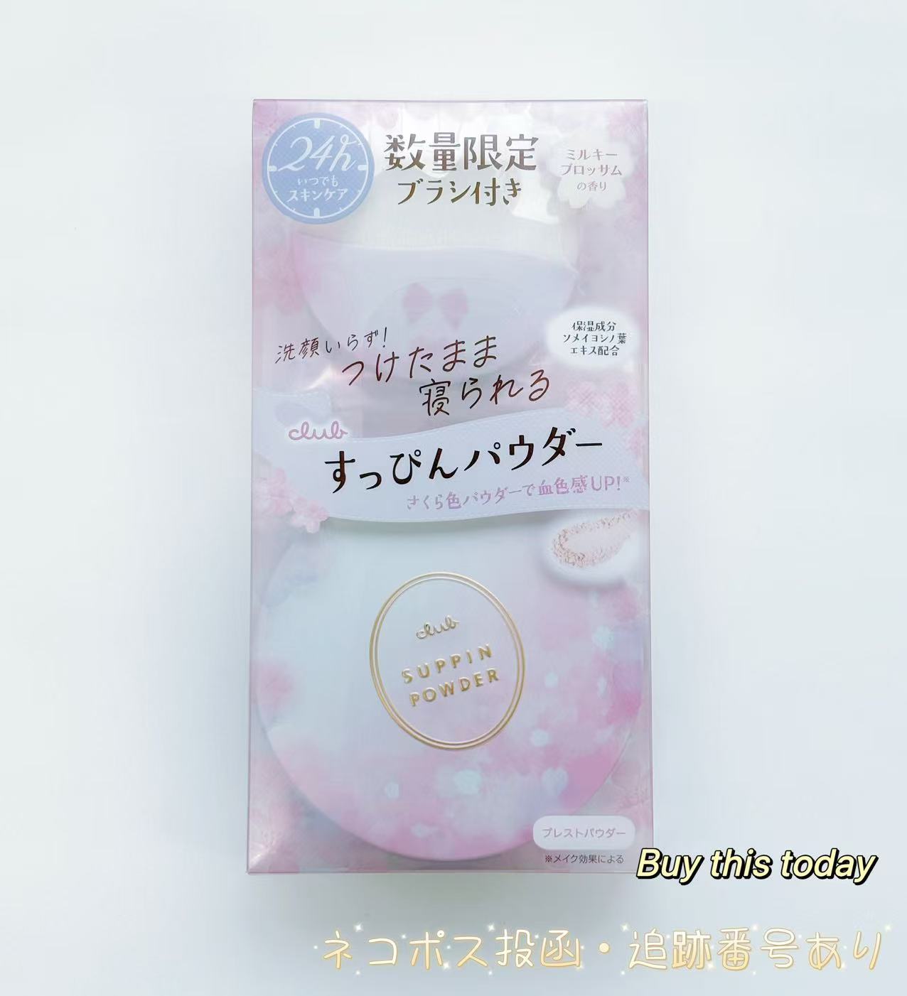 つけたまま寝られるすっぴんパウダーから、ミルキーブロッサムの香りが限定発売。 フレッシュで甘酸っぱいサクラをふんわり甘いミルクで包み込むやさしい香りです。 容器に収納できる限定デザインのふんわりブラシ付きです。 ミルクの中にサクラが溶け込む可愛い限定パッケージで一足先に春をお届けします。