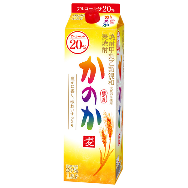 | 麦焼酎 かのか 20度のおいしさは、「香り蒸溜仕上げ原酒」がもたらす豊かでやさしい香り。3種のこだわり原酒と焼酎甲類の調和により、麦本来の味わいときれいな後味を実現しました。すっきりとした味わいで、様々な料理と合う麦焼酎です。 ※香り蒸溜仕上げ原酒一部使用 |