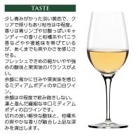 | 少し青みがかった淡い黄色で、クリアで照りもあり粘性は中程度。 香りは青リンゴや甘酸っぱいキャンディーの香りと柑橘系やバニラ香などやや複雑味を帯びているが、あくまでも爽やかさを感じさせる。 フレッシュできめの細かいやや強めの酸味と果実味のバランスがよい。 余韻に微かに甘みや果実味を感じるミディアムボディの辛口白ワイン。 余韻は中程度で飲み飽きしない。 凛と澄んだ繊細な辛口ミディアムボディの白ワインです。 切れの良い軽快な酸味と、柑橘系の爽やかな香りが融合し上品な深みを演出します。 魚介類を中心とした和食全般に、幅広く一緒に楽しんでいただけます。 |
