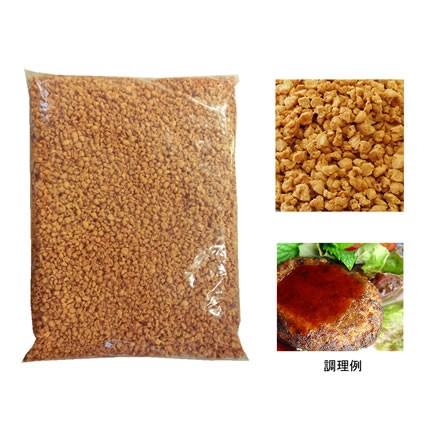 国産大豆ミート(ミンチタイプ)。ヘルシーなハンバーグ等が作れます。名称:粒状大豆たんぱく 原料:脱脂大豆(国産、NON-GMO) 賞味期限:製造から一年。