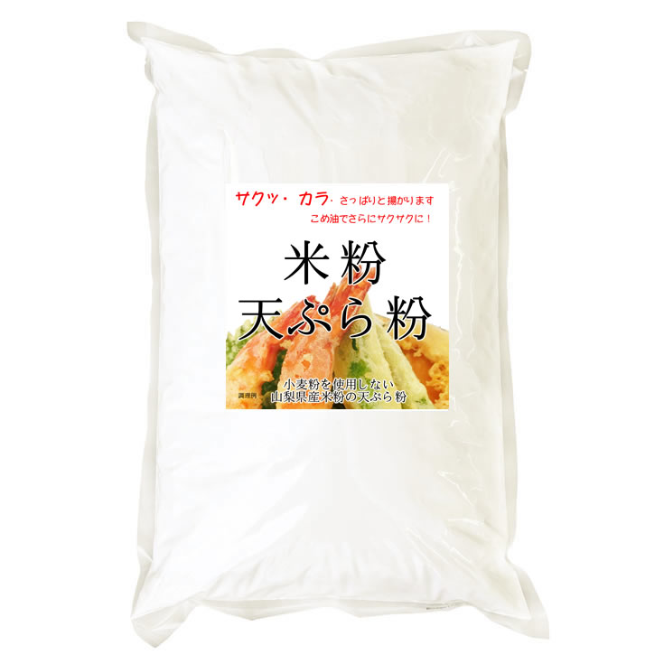 グルテンフリーの米粉の天ぷら粉。小麦粉よりサクッ・カラ・さっぱりと揚がります。■名称 米粉 天ぷら粉 ■原材料 うるち米(山梨県産)、米でんぷん(新潟県産)、ベーキングパウダー(アルミフリー)■賞味期限 製造日より1年 ■内容量 10kgx2