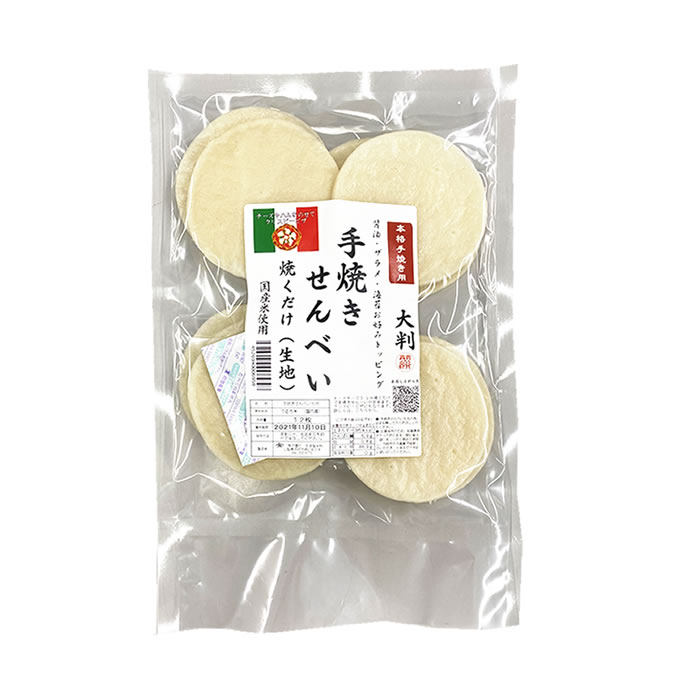 国内産の上品なうるち米を原料とした煎餅の生地12枚です。手焼きで少し焦げ目がついてから、醤油等をぬって手焼きせんべいが焼けます。焼けた煎餅生地にチーズや生ハムをのせるとクリスピーピザが焼けます。【注意事項】煎餅の生地は、衝撃に弱く割れやすいです。乾燥すると更に割れやすくなります。開封したら早めに使い切ってください。